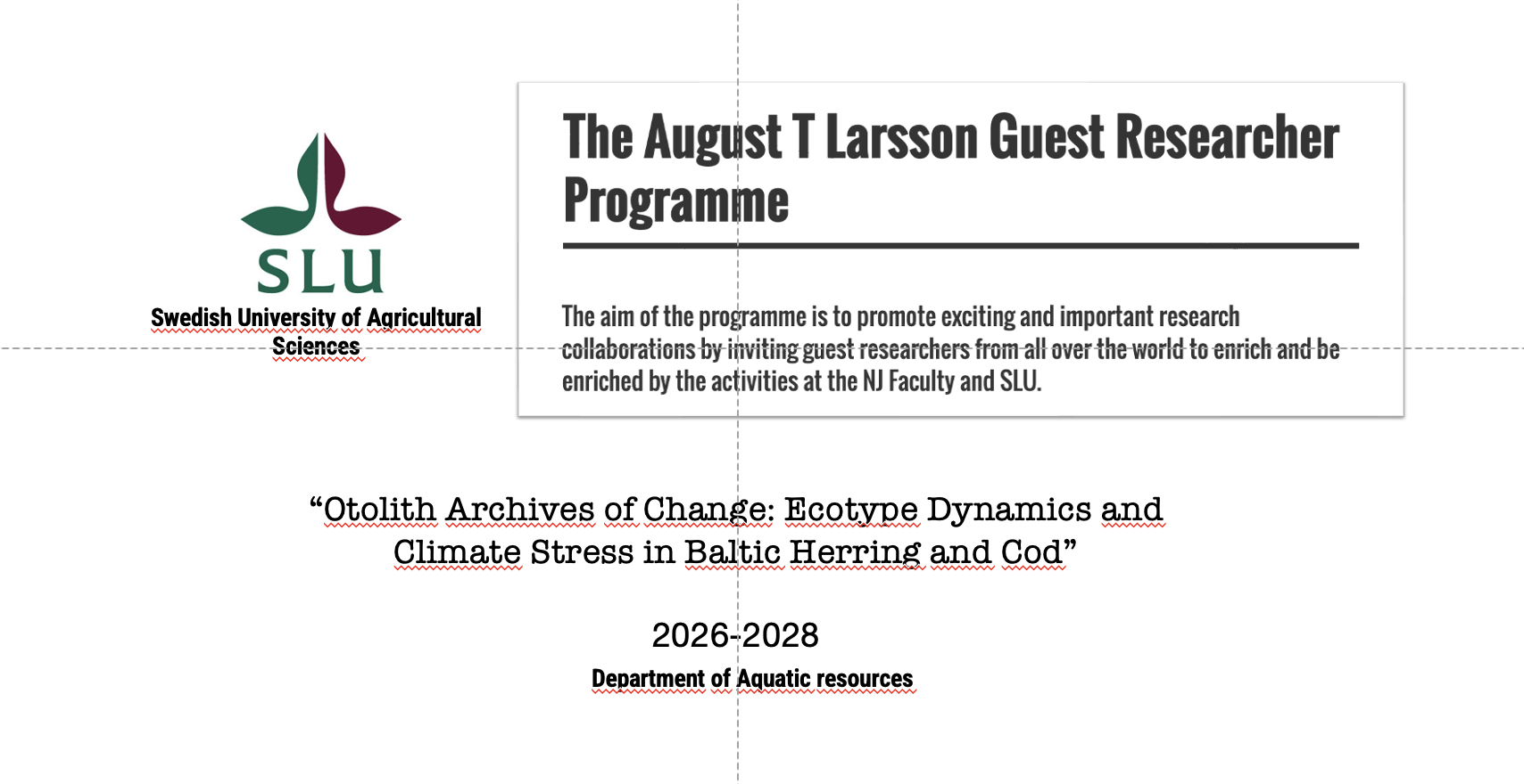 I have been awarded the August T. Larsson Guest Researcher Programme 2025 to lead “Otolith Archives of Change: Ecotype Dynamics and Climate Stress in Baltic Herring and Cod.”